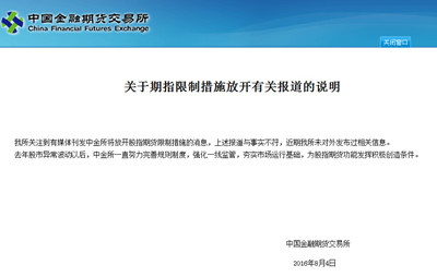 周五晚間,中金所稱,放開股指期貨限制報(bào)道與事實(shí)不符,近期未對(duì)外發(fā)布過相關(guān)信息。 去年股市異常波動(dòng)以后,中金所一直努力完善規(guī)則制度,強(qiáng)化一線監(jiān)管,夯實(shí)市場(chǎng)運(yùn)行基礎(chǔ),為股指期貨功能發(fā)揮積極創(chuàng)造條件。 |