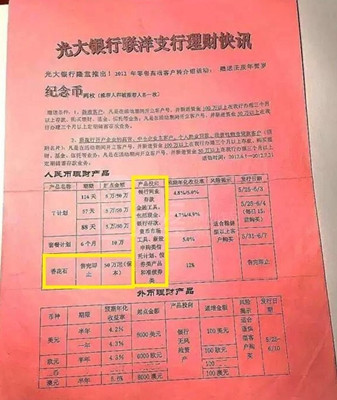 近日,有投資者向藍(lán)鯨銀行頻道反映稱,光大銀行(601818,股吧)在“香花石”項(xiàng)目上存在宣傳誤導(dǎo)和欺詐嫌疑。藍(lán)鯨銀行頻道從上海銀監(jiān)局獲悉,該局已受理相關(guān)申訴,并將于2016年9月30日前,就核查處理結(jié)果做出書(shū)面答復(fù)。 根據(jù)舉報(bào)信內(nèi)容顯示,“2012年6月,光大銀行上海分行相關(guān)網(wǎng)點(diǎn)理財(cái)經(jīng)理向投資者推薦‘香花石’產(chǎn)品,聲稱該信托保本保年化12%收益”。 光大銀行相關(guān)負(fù)責(zé)人向藍(lán)鯨銀行頻道坦言,“香花石”產(chǎn)品是由上海國(guó)際信托有限公司發(fā)行,光大上海分行履行代理收付的責(zé)任。在具體合同上并沒(méi)有寫(xiě)明收益率,合同等事宜均由上海國(guó)際信托提供,簽約售賣(mài)和該行并無(wú)多大關(guān)聯(lián)。 藍(lán)鯨銀行頻道從上海信托宣傳單中獲悉,“香花石”是2012年6月由上海國(guó)際信托發(fā)行,產(chǎn)品為3+1年期限,并于今年6月份到期。從《香花石系列·中國(guó)字畫(huà)藝術(shù)品投資(嘉世華年)集合資金信托計(jì)劃產(chǎn)品介紹》中顯示,85%~95%的資金通過(guò)拍賣(mài)的方式投資中國(guó)歷代珍貴字畫(huà)藝術(shù)品;5%~15%的資金用于必要的市場(chǎng)推廣以及支付各項(xiàng)信托費(fèi)用等。 藍(lán)鯨銀行頻道對(duì)比了上海信托和光大銀行的宣傳單發(fā)現(xiàn),在上海信托的宣傳單頁(yè)上寫(xiě)明該產(chǎn)品收益特點(diǎn)為A類受益人信托利益分配優(yōu)先于B類受益人。若信托利益分配基準(zhǔn)日信托單位凈值小于等于1元,優(yōu)先分配A類受益人本金,剩余部分向B類受益人分配。即到期信托專戶內(nèi)資金余額等于2400萬(wàn),則A類受益人收益保本,B類本金為0,并無(wú)提及預(yù)計(jì)收益率。但在光大銀行的宣傳單上“香花石”信托產(chǎn)品,預(yù)期年化收益12%,起點(diǎn)為50萬(wàn)。上海信托內(nèi)部人士透露,他們的產(chǎn)品是上報(bào)銀監(jiān)局,且公示過(guò)的,與光大銀行所宣傳收益率并不一樣。 上海信托宣傳單 光大銀行宣傳單 目前,光大銀行在“香花石項(xiàng)目”中代理收付的金額達(dá)到2400萬(wàn),涉及客戶數(shù)量并未公布。該負(fù)責(zé)人稱:“我們已經(jīng)與上海國(guó)際信托溝通過(guò),此產(chǎn)品現(xiàn)在已經(jīng)結(jié)束運(yùn)作。上海國(guó)際信托對(duì)于本金已全額兌付,但收益并沒(méi)有給到客戶。” 部分投資人說(shuō),“對(duì)光大銀行的信任,我們?cè)诳戳斯獯筱y行理財(cái)經(jīng)理的宣傳材料后就陸續(xù)在光大銀行各支行網(wǎng)點(diǎn),在光大理財(cái)經(jīng)理的幫助下辦理了向上海國(guó)際信托公司的匯款手續(xù)”。 從部分投資者出示的宣傳資料和合同來(lái)看,部分投資人認(rèn)為銀行和信托公司涉嫌違法違規(guī)或者不妥當(dāng)?shù)淖龇。例如:光大銀行的宣傳材料上寫(xiě)著,“50萬(wàn)起,保本,(預(yù)期)年化12%收益,投資標(biāo)的是新股申購(gòu)類信托計(jì)劃、債券類信托計(jì)劃等,適合穩(wěn)健型投資者購(gòu)買(mǎi)”。但拿到手的信托合同上的認(rèn)購(gòu)起點(diǎn)是5萬(wàn)起,投資標(biāo)的是藝術(shù)品字畫(huà),不保本不保收益,屬于高風(fēng)險(xiǎn)的藝術(shù)品投資基金。 在信托產(chǎn)品到期后,投資者只拿到了“項(xiàng)目本金”,并沒(méi)有獲得收益,并認(rèn)為這與銀行在信托宣傳推介材料里宣稱的嚴(yán)重不符,自己受到了宣傳誤導(dǎo)和欺詐。 目前,上海銀監(jiān)局于8月1日收到舉報(bào)材料已經(jīng)受理了相關(guān)舉報(bào)。8月5日即向舉報(bào)人出具了《舉報(bào)事項(xiàng)受理通知書(shū)》,并在通知書(shū)中告知舉報(bào)人:“我局已受理你們的舉報(bào)事項(xiàng),將對(duì)該事項(xiàng)進(jìn)行核查處理,并于2016年9月30日前,就核查處理結(jié)果向你們做出書(shū)面答復(fù)! |