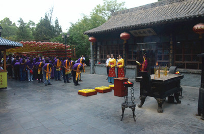 8月29日,河南天納圖集團一行200余人來洪洞大槐樹景區(qū)舉辦了“祈福中華感恩天道”客戶祭祖盛典,表達了對故土和移民先祖深深的眷戀、感恩。 當天上午8時,河南天納圖集團200余名員工和客戶在景區(qū)工作人員的帶領下,走進洪洞大槐樹景區(qū)前往碑亭處迎請神主,祭拜古大槐樹和三皇,祈福先祖保佑。隨后在景區(qū)獻殿舉辦了“祈福中華感恩天道”客戶祭祖盛典,“啟壇迎神、敬香通神、奠酒獻禮、傳肴布供、恭誦祝文、敬獻樂舞、鞠躬辭神、飲福受胙”整個祭祖活動神圣莊嚴,文化特色鮮明,獻殿內參加祭祖活動的游客摩肩接踵。 天納圖集團祭祖成員表示,“大槐樹滿足了他們尋根問祖的需求,大槐樹庇佑了一代代后裔子孫繁衍生息,繁榮發(fā)展。大槐樹下移民是一個歷史壯舉、是一種崇高精神,正是傳承了移民先祖開疆拓土的精神,才開創(chuàng)了天納圖集團不斷發(fā)展壯大的新局面。我們作為大槐樹移民后裔,今后會進一步加強彼此間的交流與合作,共同為文化研究的繁榮出謀劃策,將不遺余力的弘揚民族文化,弘揚大槐樹根祖文化”。 |