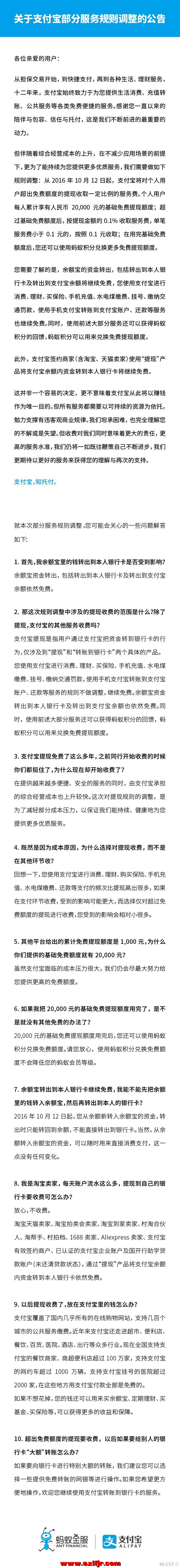 9月12日消息,繼微信3月開(kāi)始收取提現(xiàn)手續(xù)費(fèi)后,支付寶剛剛發(fā)布公告表示,因綜合經(jīng)營(yíng)成本上升,自2016年10月12日起,支付寶將對(duì)個(gè)人用戶超出免費(fèi)額度的提現(xiàn)收取0.1%的服務(wù)費(fèi),個(gè)人用戶每人累計(jì)享有2萬(wàn)元基礎(chǔ)免費(fèi)提現(xiàn)額度。在用完基礎(chǔ)免費(fèi)額度后,用戶可以使用螞蟻積分兌換更多免費(fèi)提現(xiàn)額度。 支付寶方面表示,最終選擇對(duì)提現(xiàn)而不是在其他環(huán)節(jié)收費(fèi),是因?yàn)橛脩粲弥Ц秾氈Ц兜念l次比提現(xiàn)高出很多。用戶使用支付寶更多是用于各種消費(fèi)、理財(cái)、繳費(fèi)、還信用卡、手機(jī)充值等,提現(xiàn)的需求相對(duì)而言少一些。僅對(duì)提現(xiàn)進(jìn)行收費(fèi),用戶受到的影響會(huì)相對(duì)小很多。 每個(gè)用戶累計(jì)有2萬(wàn)基礎(chǔ)免費(fèi)額度 提現(xiàn)是指用戶通過(guò)第三方支付平臺(tái)把資金轉(zhuǎn)到銀行卡的行為,今年3月,微信已經(jīng)開(kāi)始對(duì)用戶提現(xiàn)收取0.1%的手續(xù)費(fèi),每位用戶累計(jì)享有1000元免費(fèi)提現(xiàn)額度。 據(jù)介紹,支付寶的提現(xiàn)涉及“提現(xiàn)到本人銀行卡”和“轉(zhuǎn)賬到他人銀行卡”兩個(gè)功能。按照調(diào)整后的規(guī)則,支付寶也對(duì)超出免費(fèi)額度的部分按提現(xiàn)金額的0.1%收取服務(wù)費(fèi),單筆服務(wù)費(fèi)不到0.1元的則按照0.1元收取。支付寶個(gè)人用戶可以累計(jì)享有2萬(wàn)元元基礎(chǔ)免費(fèi)提現(xiàn)額度。 公告顯示,除了提現(xiàn)之外,使用支付寶進(jìn)行消費(fèi)、理財(cái)、購(gòu)買(mǎi)保險(xiǎn)、手機(jī)充值、水電煤繳費(fèi)、掛號(hào)、繳納交通罰款、使用手機(jī)支付寶轉(zhuǎn)賬到支付寶賬戶、還款等服務(wù)不受任何影響,用戶免費(fèi)使用的同時(shí)還可以獲得螞蟻積分。在用完免費(fèi)額度后,用戶累積的螞蟻積分可以用于兌換免費(fèi)提現(xiàn)額度。支付寶方面介紹,目前兌換比例是,1個(gè)螞蟻積分可以兌換1塊錢(qián)的免費(fèi)提現(xiàn)額度,上不封頂。 余額寶轉(zhuǎn)出不受影響依然免費(fèi) 此外,對(duì)于余額寶,支付寶公告表示,余額寶資金轉(zhuǎn)出,包括轉(zhuǎn)出到本人銀行卡和轉(zhuǎn)出到支付寶余額將繼續(xù)免費(fèi)。2016年10月12日起,用戶從余額新轉(zhuǎn)入余額寶的資金,轉(zhuǎn)出時(shí)只能轉(zhuǎn)回到余額,不能直接轉(zhuǎn)出到銀行卡。用戶如果余額里有錢(qián)擔(dān)心被收費(fèi),現(xiàn)在把錢(qián)轉(zhuǎn)入余額寶會(huì)是一個(gè)最佳選擇。 收費(fèi)源自“綜合經(jīng)營(yíng)成本上升較快” 支付寶方面在公告中表示,收費(fèi)的原因是“綜合經(jīng)營(yíng)成本上升較快”,調(diào)整提現(xiàn)規(guī)則是為了減輕部分成本壓力。 而此前,微信宣布提現(xiàn)收費(fèi)時(shí)也表示“并不是追求營(yíng)收之舉,而是用于支付銀行手續(xù)費(fèi)! 馬化騰在今年3月份全國(guó)兩會(huì)時(shí)曾介紹了第三方支付背后的商業(yè)模式:銀行的錢(qián)離開(kāi)銀行體系,進(jìn)入到第三方支付的賬戶,其實(shí)都是要收費(fèi)的,轉(zhuǎn)賬的手續(xù)費(fèi)大約在千分之一左右,這是第三方支付一項(xiàng)很大的成本。據(jù)馬化騰介紹,即使算上第三方支付平臺(tái)可以獲得的利息收入,微信1月份的成本還是超過(guò)3億。 支付寶在公告中表示,對(duì)于超出免費(fèi)額度的提現(xiàn)收費(fèi),這并非一個(gè)容易的決定,更不意味著支付寶從此將以賺錢(qián)作為唯一目的!暗蟹⻊(wù)都需要以可持續(xù)的資源為依托,勉力支撐有違客觀商業(yè)規(guī)律! |