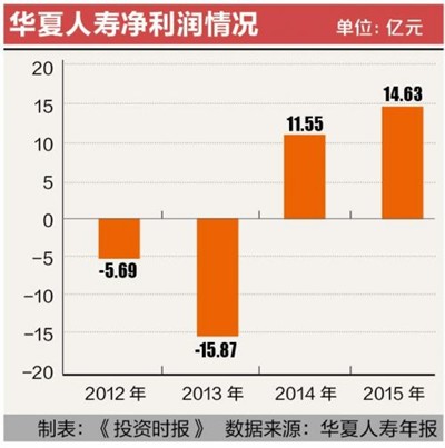 成立于2006年的華夏人壽,2009年到2013年五年間連續(xù)虧損,累計虧損超過30億元,2013年虧損近16億元而在行業(yè)內(nèi)排名第一,不過2014年及2015年因投資快速扭虧為盈。