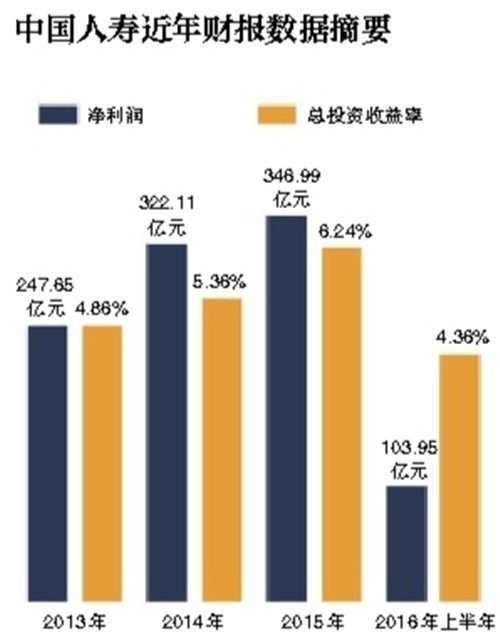 在此前公布的半年報中,中國人壽上半年共取得凈利潤104億元,同比減少67%,而其在上半年的總投資收益為508億元,較去年同期的999億元減少了49%。