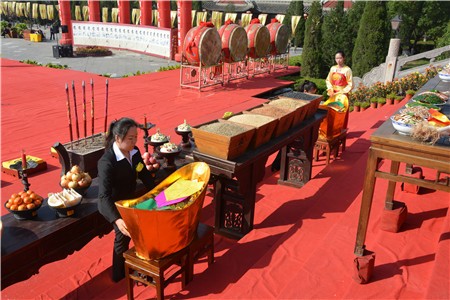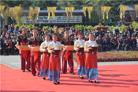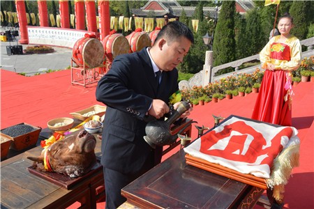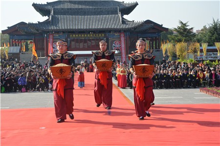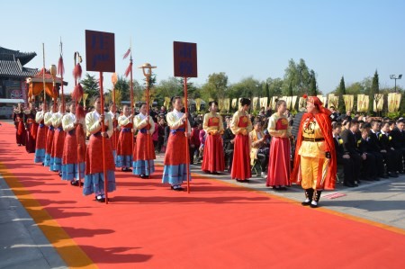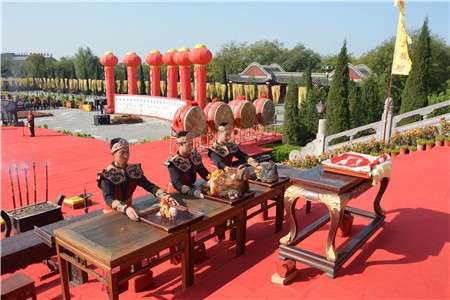 上午09點55分,寒衣節(jié)祭祖大典的主祭人及陪祭人在禮儀、儀仗、通贊、執(zhí)事、舞生等人的引導(dǎo)下,先祭拜了古大槐樹處、天地人三皇,祈福國泰民安、五谷豐登。