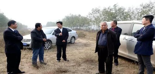 圖為:馮水平行長一行實(shí)地考察古縣村的道路修建情況 |