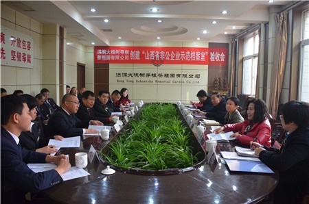 臨汾金融網(wǎng)12月7日訊(通訊員:張曉瑩) 12月7日上午,山西省檔案局經(jīng)濟(jì)科技業(yè)務(wù)指導(dǎo)處處長王彩變、副處長耿永紅、主任科員李洪濤、臨汾市檔案局以及洪洞縣檔案局局長賈長春等相關(guān)領(lǐng)導(dǎo)組成的示范檔案室驗收組蒞臨洪洞大槐樹尋根祭祖園有限公司,就創(chuàng)建“山西省非公企業(yè)示范檔案室”進(jìn)行了實地驗收。洪洞縣政府副縣長徐玉和洪洞大槐樹尋根祭祖園有限公司董事長兼總經(jīng)理范忠義及檔案工作組相關(guān)人員參加了驗收會。通過聽取匯報、查閱資料和實地驗收,驗收組一致認(rèn)為,洪洞大槐樹尋根祭祖園檔案工作扎實有效,示范檔案室創(chuàng)建獨具特色,并能夠結(jié)合自身大槐樹文化實際,發(fā)揮檔案的利用效果,符合“山西省非公企業(yè)示范檔案室”的驗收標(biāo)準(zhǔn)。 洪洞大槐樹尋根祭祖園有限公司一直以來都非常重視檔案工作,公司經(jīng)營班子多次在公司中層領(lǐng)導(dǎo)匯報會、全體員工大會上,對檔案管理工作提出部署與要求。并結(jié)合公司自身的實際情況,建立了一套適合私營企業(yè)運行的檔案管理系統(tǒng),完善了各項檔案相關(guān)制度,健全了檔案管理工作職責(zé),建立了一系列檔案利用效果展示,為檔案管理能夠更好的為企業(yè)生產(chǎn)運營服務(wù)做出了努力。2016年8月26日,山西省檔案局經(jīng)濟(jì)科技業(yè)務(wù)指導(dǎo)處副處長耿永紅實地指導(dǎo)了公司檔案管理工作,并結(jié)合創(chuàng)建要求提出了完善的提升意見。 到12月7日,整整100天的時間內(nèi),公司檔案工作組在各級業(yè)務(wù)部門的精心指導(dǎo)下、在公司各室部的大力配合下,加班加點、緊張高效的拿出了提升意見,做好了驗收準(zhǔn)備。在進(jìn)一步提升檔案管理工作的同時,檔案室新增專用服務(wù)器,促進(jìn)了檔案工作的現(xiàn)代化,增加了“移民文化陳列室”、“文化活動陳列廳”和“紀(jì)念品研發(fā)陳列廳”,并按照“九防”要求,配備了二氧化碳滅火器、除濕機(jī)、溫濕度計等設(shè)備,使檔案庫房“九防”達(dá)到了要求。通過進(jìn)一步完善檔案資料,檔案室現(xiàn)有檔案資料5202卷(冊),移民文化陳列室現(xiàn)陳列430件文物,文化活動陳列廳共展出92項活動掠影,紀(jì)念品研發(fā)陳列廳共展出97類紀(jì)念品。通過此次檔案提升,洪洞大槐樹尋根祭祖園有限公司順利完成了創(chuàng)建驗收工作,拿到了這項檔案方面的最高榮譽(yù)。 相信在今后的工作中,洪洞大槐樹尋根祭祖園有限公司將繼續(xù)把檔案工作做實做細(xì),為公司接下來創(chuàng)建國家AAAAA級旅游景區(qū)提供完備的檔案資源,為促進(jìn)社會和諧發(fā)展再作貢獻(xiàn)。 |