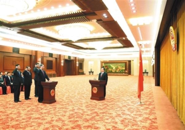 新華社記者 劉衛(wèi)兵 攝 12月25日,十二屆全國人大常委會在北京人民大會堂舉行憲法宣誓儀式。