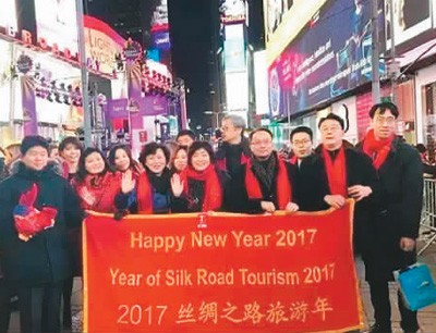 在紐約時報廣場新年倒計時活動現(xiàn)場,民眾手持“2017絲綢之路旅游年”的條幅慶?缒。(來自中國駐紐約總領(lǐng)館) 2016年12月31日晚,美國紐約時報廣場舉行一年一度的跨年倒計時慶典活動。今年也是時報廣場聯(lián)盟連續(xù)第六年與美中友好協(xié)會合作,利用該慶典活動推廣中國旅游文化,今年的活動主題為“游絲綢之路,品美麗中國”。 中國駐紐約總領(lǐng)事章啟月、中國駐紐約旅游辦事處主任王艷杰、紐約市長特別代表邁克爾和美中友好協(xié)會會長張錦平等出席慶典活動。紐約市長白思豪專門為“游絲綢之路,品美麗中國”的開幕活動發(fā)來賀信,他表示,絲綢之路這條古代的商業(yè)貿(mào)易網(wǎng)絡(luò)增進(jìn)了國際間的交流。 在新年倒計時中國文化展示活動中,“游絲綢之路,品美麗中國”成為重點宣傳和介紹的主題。來自紐約地區(qū)的華人藝術(shù)家伴著彝族民歌《遠(yuǎn)方的客人請你留下來》和西北民歌《掀起你的蓋頭來》歡快的曲調(diào)翩翩起舞,向觀眾呈現(xiàn)了絲綢之路沿線的中國民族特色舞蹈。 時報廣場數(shù)塊巨屏同時滾動播放“一帶一路”的宣傳片,并不停打出中文“新年快樂”的問候語,F(xiàn)場發(fā)放的幾千條印有中英文“中國歡迎您”、“2017新年快樂”字樣的紅圍巾也使活動格外溫暖和喜慶。整個跨年慶典閃耀著濃郁的中國文化元素,突出“一帶一路”的主題,既帶來了中國人民的新年祝福,也向世界發(fā)出了到中國旅游觀光的誠摯邀請。 中國駐紐約總領(lǐng)事章啟月在慶典活動現(xiàn)場致辭時表示,中國有著豐富的旅游資源和人文景觀,希望大家在2017年去中國暢游絲綢之路,感受美麗中國的精彩與魅力!敖z綢之路”沿線的合作豐富多樣,而文化和旅游是最貼近廣大民眾的重要領(lǐng)域,我們真誠地歡迎每個人積極參與、親身體驗,感受中國的悠久歷史和古老文化,同時感受中國的現(xiàn)代開放,尋找經(jīng)濟合作機會,共享發(fā)展成果。 |