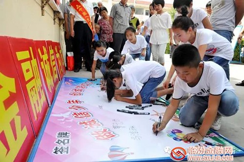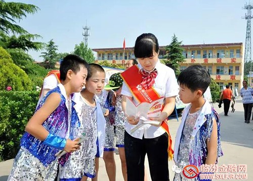 放歌“六一”,童心飛揚(yáng),這里是一片歡樂(lè)的海洋。歡慶“六一”,心心相連,這里是一道靚麗風(fēng)景。6月2日,在襄汾縣景毛中心學(xué)校歡慶六一兒童節(jié)之際,人行襄汾縣支行和襄汾農(nóng)商行組織的金融與誠(chéng)信進(jìn)校園宣傳隊(duì)隊(duì)員,在人行襄汾支行黨組書(shū)記、行長(zhǎng)武超雄,副行長(zhǎng)關(guān)新功和襄汾農(nóng)商行行長(zhǎng)馮水平的帶領(lǐng)下,也來(lái)到孩子們中間,為他們送上籃球、排球、足球、跳繩、地球儀等節(jié)日禮物,觀看由老師、孩子們自編自演的文藝節(jié)目,開(kāi)展金融與誠(chéng)信知識(shí)宣傳,和廣大家長(zhǎng)、老師等一起為孩子們過(guò)了一個(gè)有意義的節(jié)日。 圖為:人行襄汾支行武超雄、襄汾農(nóng)商行行長(zhǎng)馮水平等領(lǐng)導(dǎo)一同觀看演出 圖為:襄汾農(nóng)商行馮水平行長(zhǎng)親自宣傳金融與誠(chéng)信知識(shí) 文藝表演中,孩子們表演的《追尋誠(chéng)信、攜手誠(chéng)信》《誠(chéng)信之花處處開(kāi)》等節(jié)目,表達(dá)從小立志做誠(chéng)信之人,攜手共筑社會(huì)大家庭時(shí)時(shí)講誠(chéng)信,處處做誠(chéng)信的美好愿望。不時(shí)贏得現(xiàn)場(chǎng)觀眾的陣陣熱烈掌聲。文藝表演場(chǎng)外,設(shè)立專門宣傳咨詢臺(tái)前,工作人員紛紛拿出精心準(zhǔn)備的各類金融與誠(chéng)信宣傳資料,給過(guò)往群眾、家長(zhǎng)和學(xué)生,認(rèn)真講解,耐心。演出結(jié)束后,孩子們紛紛來(lái)到,做誠(chéng)信學(xué)生、創(chuàng)誠(chéng)信校園的簽名展板前,簽下自己名字,簽下一份誠(chéng)信之諾。 場(chǎng)內(nèi),演誠(chéng)信、看誠(chéng)信;場(chǎng)外,講誠(chéng)信,推誠(chéng)信;謝幕,簽誠(chéng)信、做誠(chéng)信的三方良好互動(dòng)效果,一次次的把這次金融與誠(chéng)信進(jìn)校園宣傳活動(dòng)推向了高潮。