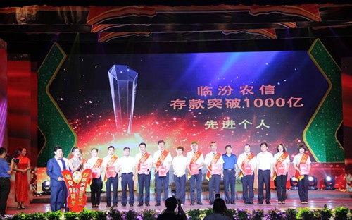 | 臨汾金融網(wǎng)訊 2017年6月29日晚,由山西省聯(lián)社臨汾辦事處主辦的“臨汾農(nóng)信紀(jì)念建黨96周年暨慶祝存款突破1000億元頒獎(jiǎng)晚會(huì)”在臨汾影劇院盛大舉行,臨汾市銀行業(yè)協(xié)會(huì)會(huì)長(zhǎng)樊國剛為獲得突破1000億元存款先進(jìn)個(gè)人頒獎(jiǎng)。 |