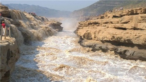 中國的瀑布,第一是黃果樹,第二是黃河。黃河瀑布最佳賞點(diǎn)山西吉縣壺口瀑布. 黃河壺口瀑布最佳時(shí)點(diǎn)一是三月桃花訊,二是7至8月夏日豐水期,二是9月秋風(fēng)汛。臨時(shí)改策略,不去投宿直奔景區(qū),5點(diǎn)30到壺口景區(qū),6點(diǎn)關(guān)門,買景區(qū)電瓶車票每人20元,門票每人90元,5點(diǎn)50乘景區(qū)面包車進(jìn)去,開2公里到河邊?吹狡俨剂耍簝缮揭粛{谷,很寬,對(duì)面是陜西,太陽懸在陜西一側(cè)山上,坡下有公路,坡上有樓房。黃河由北向南流來,轟隆聲歷歷。下河床踱向水邊,河床很寬,都是大石板,小股分支漫過石板緩緩流過,土黃色觸目驚心。太陽照著,薄薄的水,泛著銀色,小石橋架在河床,引向河中央。有游人慢慢上岸,一步三回頭,我們這些末班車的游客則腳步匆忙撲心河心。同車有廣東的攝影團(tuán),扛了三腳架彼此呼喚著快走。黃河水從上游過來,咆哮、吼鳴,河岸到此突然收窄,土黃色的水爭先恐后跌入,水滴千顆萬珠,泛起水氣霧氣一片。走近水,有鐵絲網(wǎng)攔著,水滴水氣打在臉上,護(hù)著相機(jī)觀景:上游的水鋪天蓋地過來,每滴水珠一生一次有機(jī)會(huì)在這里跳崖,或從容或魯莽,有高難度直跳也有順石壁滑下的。一支腰鼓隊(duì),在對(duì)岸表演,跳著唱著敲著,和著黃河轟嗚聲。我們這一側(cè)有農(nóng)民牽著小毛驢邀你拍照,看我拿出白羊肚毛巾扎頭,一個(gè)瘦弱的中年農(nóng)民主動(dòng)過來幫我扎成他那樣,還拿出一桿旱煙袋給我作道具拍照,我順手塞他20元,彼此樂哈哈拍了合影。和黃河親近一小時(shí),撤,住壺口鎮(zhèn),第二天晨7點(diǎn)半,再買門票進(jìn)去,二看瀑布,還付20元進(jìn)園中園,名"龍洞",下到河下仰視瀑布。壺口瀑布圖案上了第四套人民幣50元的背面,當(dāng)年柯受良曾在此駕車飛躍。這條母親河,孕育了中華文化,到此又把中原大地一劈為二。站壺口,看河沭風(fēng)聽瀑,想著"民族魂"之類的比喻、說法,氣勢磅礴激躍,源遠(yuǎn)流長感悟到了,河水之臟依然難以容忍。所謂民族精神亦如此,可圈可點(diǎn),可歌可泣,精華該繼承,糟粕當(dāng)棄之。 |