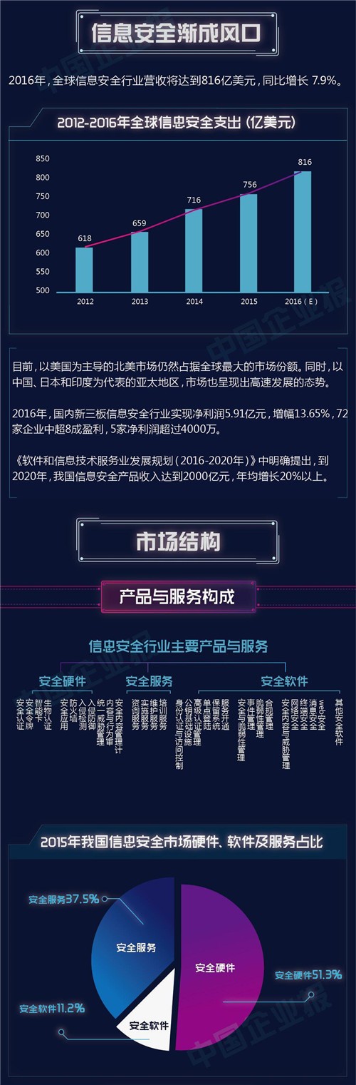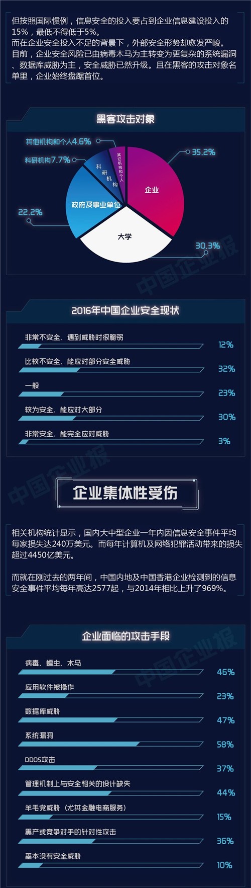 5月12號(hào),WanaCrypt0r 2.0勒索軟件攻擊全球Windows漏洞,被感染的電腦將在10秒內(nèi)鎖住,所有文件全部加密無(wú)法打開(kāi),只有按彈窗提示交納贖金才能解密。短短四天,100多個(gè)國(guó)家的政府、高校、醫(yī)院等機(jī)構(gòu)被攻陷。 相較于個(gè)人用戶,企業(yè)用戶電腦中的數(shù)據(jù)具有更高的保密性和不可復(fù)制性,成為此次事件的“重災(zāi)區(qū)”。數(shù)據(jù)顯示,僅5月12日至5月13日,除少數(shù)個(gè)人用戶,國(guó)內(nèi)出現(xiàn)的29000余個(gè)感染IP均來(lái)自企業(yè)和機(jī)構(gòu)。 而在這29000余個(gè)感染IP中,14.7%為教育科研機(jī)構(gòu)、11.2%為生活服務(wù)類機(jī)構(gòu)、10.3%為商業(yè)中心、9.1%為交通運(yùn)輸企業(yè)或機(jī)構(gòu)、3.6%為政府機(jī)構(gòu)及事業(yè)單位、2.4%為醫(yī)療機(jī)構(gòu)、1.4%為普通企業(yè);另有46.9%為其他類型的企業(yè)或機(jī)構(gòu)。 而今,WannaCry風(fēng)波漸漸平息,但危機(jī)仍在。黑客組織“影子經(jīng)紀(jì)人”被普遍認(rèn)為正是勒索病毒W(wǎng)annaCry的背后推手。5月16日,據(jù)稱是“影子經(jīng)紀(jì)人”的推特賬號(hào)發(fā)文表示,未來(lái)還計(jì)劃將惡意代碼和數(shù)據(jù)以“付費(fèi)訂閱模式”的方式進(jìn)行出售。 “棱鏡門”事件后,社會(huì)普遍對(duì)網(wǎng)絡(luò)安全越來(lái)越重視,國(guó)家也出臺(tái)了相關(guān)的政策和規(guī)劃來(lái)支持信息安全行業(yè)的發(fā)展。而隨著企業(yè)信息安全事件引發(fā)的平行效應(yīng),也讓信息安全概念熱度持續(xù)上升。今年,WanaCrypt0r 2.0勒索病毒發(fā)生后的3天,全球網(wǎng)絡(luò)安全領(lǐng)域的大型企業(yè)的市值就增加了72億歐元。 目前,個(gè)人信息安全市場(chǎng)競(jìng)爭(zhēng)日趨激烈,企業(yè)級(jí)產(chǎn)品和服務(wù)成為行業(yè)當(dāng)下及未來(lái)的轉(zhuǎn)型方向和業(yè)務(wù)重點(diǎn)。同時(shí),龍頭企業(yè)紛紛加快了并購(gòu)整合步伐。對(duì)于中小型企業(yè)來(lái)說(shuō),積極發(fā)揮自身優(yōu)勢(shì),堅(jiān)持專業(yè)化、細(xì)分化道路更具前途。 作為知識(shí)密集型的新興行業(yè),信息安全行業(yè)與資本、勞動(dòng)密集型的傳統(tǒng)產(chǎn)業(yè)有顯著的不同,知識(shí)和人才發(fā)揮著重要作用、技術(shù)資本和人力資本是行業(yè)內(nèi)企業(yè)的核心競(jìng)爭(zhēng)力。目前,人才欠缺是制約行業(yè)發(fā)展的一大瓶頸。 互聯(lián)網(wǎng)的愈加成熟,帶來(lái)了信息安全領(lǐng)域更多的思考。電力、能源、制造等行業(yè)的工業(yè)控制如何保證不被攻擊;物聯(lián)網(wǎng)、智能家電如何防止信息泄露;移動(dòng)支付如何保障安全;如何開(kāi)發(fā)適合云平臺(tái)安全的產(chǎn)品和服務(wù)等。 |