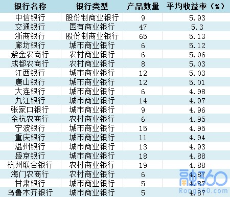 本周銀行理財概況 融360監(jiān)測的數(shù)據(jù)顯示,本周(7月21日-7月27日)銀行理財產(chǎn)品發(fā)行量共2377款,較上周減少了26款,平均預(yù)期年化收益率為4.42%,較上周小幅上升0.03個百分點,近一個月收益波動非常小;平均期限為5個月,較上周縮短了0.5個月。 一、12個月以上理財產(chǎn)品收益大幅上漲 從不同期限理財產(chǎn)品來看,本周期限在3個月以內(nèi)的理財產(chǎn)品819款,平均收益率為4.32%,3-6個月理財產(chǎn)品789款,平均收益率為4.45%,6-12個月理財產(chǎn)品680款,平均收益率為4.44%,12個月以上理財產(chǎn)品63款,平均收益率為4.78%。 各期限理財產(chǎn)品收益率均有一定幅度上升,其中12月以上理財產(chǎn)品上升幅度最大,較上周上升了0.34個百分點。不過12月以上理財產(chǎn)品總量較少,收益波動幅度一直比較大。 二、保本理財收益大幅上漲 從不同收益類型理財產(chǎn)品來看,本周保證收益類理財產(chǎn)品190款,平均收益率為3.78%,較上周上升了0.06個百分點;保本浮動收益類理財產(chǎn)品546款,平均收益率為3.90%,較上周上升了0.1個百分點,非保本浮動收益類理財產(chǎn)品1527款,平均收益率為4.69%,較上周上升了0.01個百分點。 各類型理財產(chǎn)品收益率均上升,但是保本類理財產(chǎn)品漲幅明顯高于非保本理財產(chǎn)品。本月外媒傳銀監(jiān)會要求銀行下調(diào)表內(nèi)理財即保本理財收益,以控制風(fēng)險,消息可靠性比較高。本周保本理財收益大幅上升出乎市場預(yù)料。融360理財分析師認(rèn)為,降收益控風(fēng)險可能只是針對部分銀行,而且需要一個過程,短期大幅下降的可能性不大。 三、20款理財產(chǎn)品收益率超6%,全是結(jié)構(gòu)性產(chǎn)品 從不同收益區(qū)間來看,本周預(yù)期收益率在3%(含3%)以內(nèi)的理財產(chǎn)品130款,預(yù)期收益率在3%-4%(含4%)之間的理財產(chǎn)品430款,預(yù)期收益率在4%-5%(含5%)之間的理財產(chǎn)品1398款,預(yù)期收益率在5%-6%(含6%)之間的理財產(chǎn)品314款,預(yù)期收益率在6%以上的理財產(chǎn)品20款。 收益率6%以上的理財產(chǎn)品全部為結(jié)構(gòu)性理財產(chǎn)品,收益率在5.5%以上的理財產(chǎn)品共37款,其中31款是結(jié)構(gòu)性理財產(chǎn)品。所以投資者看到高收益理財產(chǎn)品要謹(jǐn)慎,高收益未必能拿得到。 四、股份制銀行收益再登榜首 從不同類型銀行來看,本周股份制銀行理財產(chǎn)品360款,平均收益率為4.70%,城商行理財產(chǎn)品808款,平均收益率為4.58%,國有銀行理財產(chǎn)品404款,平均收益率為4.47%,農(nóng)商行理財產(chǎn)品716款,平均收益率為4.20%,郵儲銀行理財產(chǎn)品38款,平均收益率為3.87%,外資銀行理財產(chǎn)品37款,平均收益率為2.59%。 股份制銀行連續(xù)兩周拿下收益冠軍,其中中信銀行(行情6.63 -0.60%,診股)(601998,股吧)理財產(chǎn)品收益率均在5%以上,浙商銀行最低收益也有4.81%,這兩家銀行拉高了整體股份制銀行的平均收益。招商銀行(行情25.51 -1.05%,診股)(600036,股吧)理財產(chǎn)品平均收益率為4.75%,超過了平均收益率,在股份制銀行中排名第三,但招行發(fā)行的大部分都是私銀客戶、高凈值客戶及金葵花客戶專屬理財產(chǎn)品,實際上該行發(fā)行的針對普通投資者的理財產(chǎn)品收益率并不高,在行業(yè)中處于下游水平。 五、8家銀行平均收益率超過5% 融360對本周理財產(chǎn)品發(fā)行量超過5款的銀行進(jìn)行收益排名,數(shù)據(jù)顯示,中信銀行以5.93%的平均收益率穩(wěn)居榜首,比第二名交通銀行(行情6.42 -0.16%,診股)高出0.63個百分點。平均收益率在5%以上的銀行有8家,較上周增加了2家。 在收益排名前20的銀行中,有12家城商行,5家農(nóng)商行,2家股份行,1家國有行。融360理財分析師要提醒大家的是,如果國有銀行和股份制銀行收益過高,要考慮其背后的原因,比如本周交通銀行發(fā)行的收益率5.2%以上的理財產(chǎn)品全部為結(jié)構(gòu)性理財產(chǎn)品,招商銀行發(fā)行的高收益理財產(chǎn)品大多面對該行的高端客戶。 結(jié)語 7月第一周銀行理財收益大幅回落之后,此后三周一直處于窄幅波動階段,每周漲跌幅度不超過0.03個百分點。本月受繳稅繳準(zhǔn)影響,銀行資金面壓力加大,不過央行在公開市場進(jìn)行多次逆回購操作,緩解了資金緊張局面。下半年繼續(xù)實施穩(wěn)健中性的貨幣政策,資金面將維持緊平衡狀態(tài),市場利率趨穩(wěn),銀行理財收益也很難出現(xiàn)大幅漲跌的情況。 |