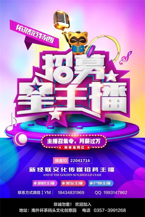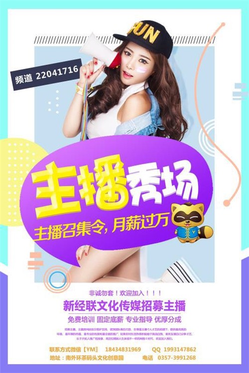 本公司職業(yè)主播與正規(guī)編制待遇相同,享有保底工資制度,根據(jù)個(gè)人業(yè)績(jī)?cè)燎г饺f元從低到高收入不等! 有無經(jīng)驗(yàn)均可,新主播公司【免費(fèi)培訓(xùn)】基礎(chǔ)教學(xué)、不收任何相關(guān)費(fèi)用! 1、通過“手機(jī)”在正規(guī)平臺(tái)進(jìn)行直播進(jìn)行互動(dòng)聊天; 2、創(chuàng)造聊天話題,主動(dòng)與在線觀眾及粉絲互動(dòng);對(duì)收到的打賞、點(diǎn)贊或評(píng)論給予及時(shí)感謝和熱情的回應(yīng); 3、維護(hù)頻道正常(綠色、健康、正能量)直播環(huán)境; 4、服從公司規(guī)章制度管理模式。 任職條件: 1、性別【女】,專業(yè)不限,16-28周歲,普通話流利,形象干凈,有積極向上,健康樂觀的心態(tài); 2、要求個(gè)人素質(zhì)好,責(zé)任心強(qiáng),無任何不良嗜好,對(duì)自己有自信 3、形象:五官端正,有一定的個(gè)人氣質(zhì),并且具備親和力,整體著裝時(shí)尚 4、互動(dòng)能力強(qiáng),樂觀開朗,喜歡網(wǎng)絡(luò)休閑軟件,能正確對(duì)待互聯(lián)網(wǎng)及網(wǎng)絡(luò)視頻互動(dòng) 5、有比較穩(wěn)定的工作時(shí)間,全職者每天6小時(shí),兼職者每天3小時(shí); 6、“零”經(jīng)驗(yàn),“零”門檻,公司專業(yè)的基礎(chǔ)培訓(xùn)和指導(dǎo),伴你走上正規(guī)職業(yè)主播道路 【做主播、就到新經(jīng)聯(lián)文化傳媒有限公司】 |