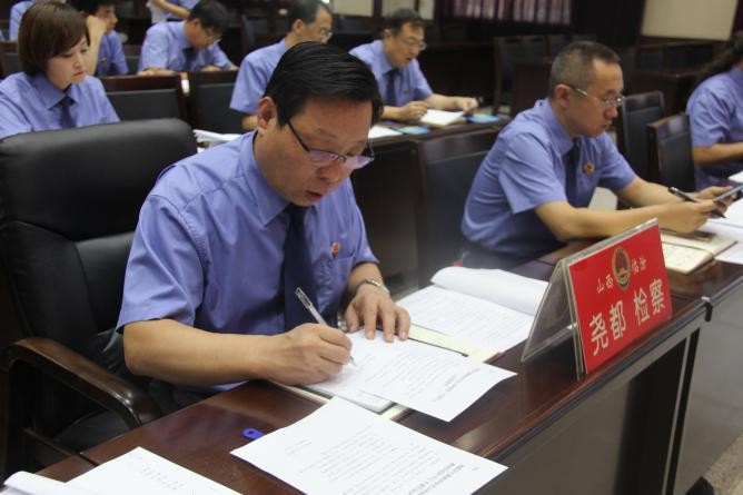 臨汾金融網(wǎng)訊(楊杰 黃海霞)2018年9月6日下午,山西省臨汾市堯都區(qū)人民檢察院黨委各支部組織召開“深化掃黑除惡,建設(shè)平安堯都”主題黨日活動。院黨組書記、檢察長仇振芳同志以一名普通黨員身份參加了活動。 活動在奏唱國歌聲中拉開帷幕,各支部嚴(yán)格按照要求開展活動。一是集中學(xué)習(xí)《堯都區(qū)2018年9月“深化掃黑除惡,建設(shè)平安堯都”主題黨日活動宣講通稿》,二是觀看視頻資料《掃黑除惡鏟毒根》,三是組織黨員干部代表圍繞黨日主題進(jìn)行討論發(fā)言,四是簽署《堯都區(qū)掃黑除惡專項斗爭副科級以上干部及基層黨組織書記“五要五堅決”公開承諾書》,五是簽署《堯都區(qū)掃黑除惡專項斗爭黨員、干部個人公開承諾書》,六是填寫《堯都區(qū)掃黑除惡專項斗爭黨員、干部對照自查表》。最后,全體黨員起立,奏唱《國際歌》中結(jié)束。 開展掃黑除惡專項斗爭,是以習(xí)近平同志為核心的黨中央作出的重大決策部署,事關(guān)社會大局穩(wěn)定和國家長治久安,事關(guān)人心向背和基層政權(quán)鞏固,事關(guān)進(jìn)行偉大斗爭、建設(shè)偉大工程、推進(jìn)偉大事業(yè)、實現(xiàn)偉大夢想,是當(dāng)前一項重要的政治任務(wù)。通過主題黨日活動,使全體黨員干部繼續(xù)秉持初心,團(tuán)結(jié)奮斗,進(jìn)一步增強開展掃黑除惡專項斗爭的責(zé)任感、緊迫感;顒又,大家紛紛發(fā)言表態(tài),要提高自己的政治站位,提升自己的黨性修養(yǎng),自覺與黑惡勢力劃清界限,自覺承諾踐諾,自覺抵制黑惡,積極投身掃黑除惡專項斗爭,并做好宣傳工作,以實際行動為加快“五個堯都”建設(shè)貢獻(xiàn)力量。 |