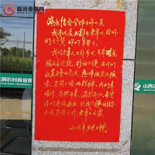 臨汾金融網(wǎng)訊(霍洋)近日,洪洞農(nóng)商行淹底支行迎來一位特殊的客戶,他手中拿著一幅大大的感謝信和一袋蜜棗,直奔營業(yè)窗口微笑而來,在大堂經(jīng)理上前詢問辦理什么業(yè)務(wù)時,老人微笑著說道:“這是我家里棗樹上結(jié)的大蜜棗,熟了,請你們嘗嘗鮮”。 老人說:“平時工資、養(yǎng)老金、地補都在咱們淹底支行辦理,我們這些上了年紀(jì)的老人在一起聊天時,大家一致認為咱們淹底支行工作人員的服務(wù)態(tài)度很好,得到了附近老百姓的高度贊揚,因此,大家想委托我代表老年人感謝咱們淹底支行的工作人員,希望你們再接再厲,把淹底支行辦成“百姓銀行,老人之家”。 老人質(zhì)樸的話語猶如一劑強心劑,鼓舞著商行人時刻踐行以客戶為中心的服務(wù)宗旨,作為一線柜員,每天坐在三尺柜臺前與客戶面對面交流,他們的一言一行被客戶看在眼里,簡簡單單的紅色感謝信和一袋紅棗,是對商行每一名員工熱忱服務(wù)的最高褒獎。 |