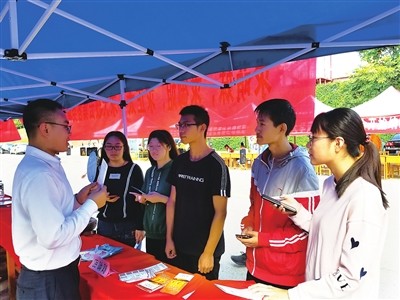 近日,中行臨汾分行組織員工走進(jìn)山西師范大學(xué),通過懸掛宣傳橫幅、發(fā)放宣傳折頁、現(xiàn)場(chǎng)講解等形式,面向大學(xué)生開展青少年金融知識(shí)普及教育宣傳活動(dòng)。 翟世豪 攝 |