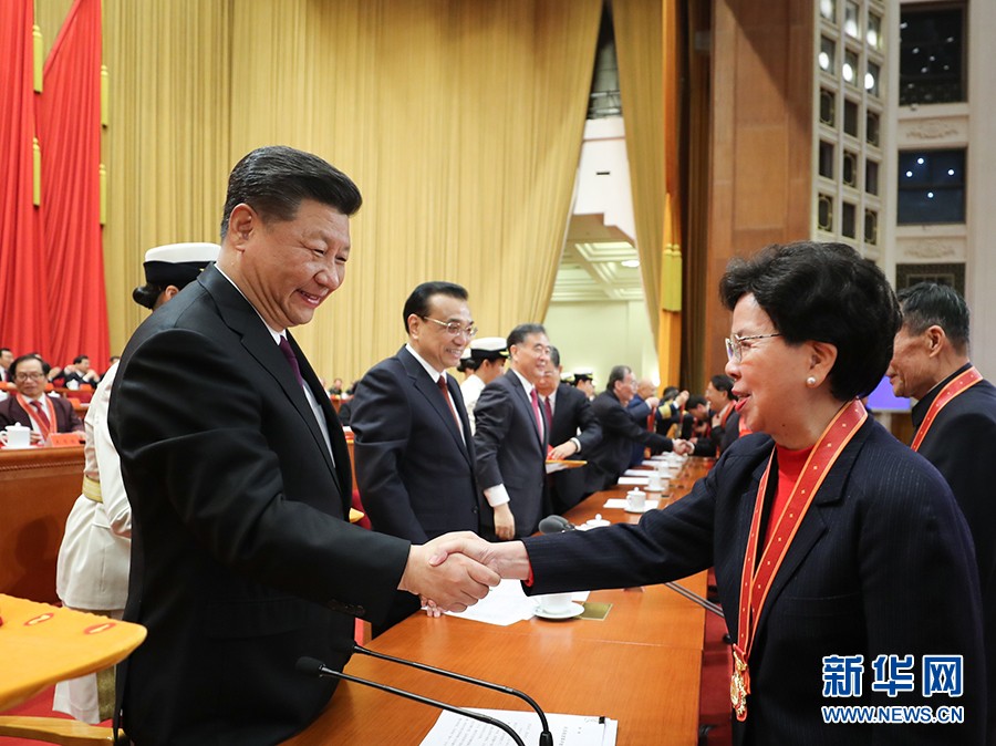 ![]() 12月18日,慶祝改革開(kāi)放40周年大會(huì)在北京人民大會(huì)堂隆重舉行。中共中央總書(shū)記、國(guó)家主席、中央軍委主席習(xí)近平在大會(huì)上發(fā)表重要講話。這是習(xí)近平在主席臺(tái)向全場(chǎng)致意。 10時(shí),李克強(qiáng)宣布慶祝大會(huì)開(kāi)始。全體起立,高唱國(guó)歌。 王滬寧宣讀《中共中央 國(guó)務(wù)院關(guān)于表彰改革開(kāi)放杰出貢獻(xiàn)人員的決定》。決定指出,黨中央、國(guó)務(wù)院決定,授予于敏等100名同志改革先鋒稱號(hào),頒授改革先鋒獎(jiǎng)?wù)?為感謝國(guó)際社會(huì)對(duì)中國(guó)改革開(kāi)放事業(yè)的支持和幫助,向阿蘭·梅里埃等10名國(guó)際友人頒授中國(guó)改革友誼獎(jiǎng)?wù)。大?huì)宣讀了授予改革先鋒稱號(hào)、中國(guó)改革友誼獎(jiǎng)?wù)氯藛T名單。 在《春天的故事》樂(lè)曲聲中,習(xí)近平等為獲得改革先鋒稱號(hào)、中國(guó)改革友誼獎(jiǎng)?wù)氯藛T代表頒獎(jiǎng)。