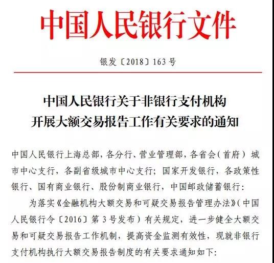 根據(jù)該通知要求,2019年1月1日起,包括微信支付,支付寶等在內(nèi)的非銀行第三方支付機(jī)構(gòu)以下交易情況必須上報: 1、當(dāng)日單筆或者累計交易人民幣5萬元以上(含5萬元)、外幣等值1萬美元以上(含1萬美元)的現(xiàn)金收支; 2、非自然人客戶支付賬戶與其他賬戶發(fā)生當(dāng)日單筆或者累計交易人民幣200萬元以上(含200萬元)、外幣等值20萬美元以上(含20萬美元)的款項劃轉(zhuǎn); 3、自然人客戶支付賬戶與其他賬戶發(fā)生當(dāng)日單筆或者累計交易人民幣50萬元以上(含50萬元)、外幣等值10萬美元以上(含10萬美元)的境內(nèi)款項劃轉(zhuǎn); 4、自然人客戶支付賬戶與其他的銀行賬戶發(fā)生當(dāng)日單筆或者累計交易人民幣20萬元以上(含20萬元)、外幣等值1萬美元以上(含1萬美元)的跨境款項劃轉(zhuǎn)。