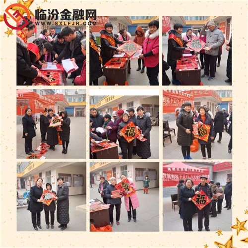 臨汾金融網(wǎng)訊 堯都農(nóng)商行坂下支行組織員工深入高河店社區(qū)為客戶贈(zèng)送對(duì)聯(lián)180副,福字160個(gè),預(yù)約客戶32戶,當(dāng)天營(yíng)銷存款76萬(wàn)元。 |