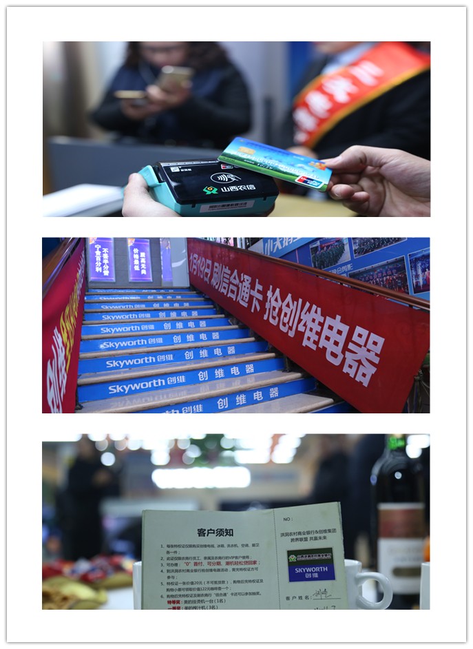 臨汾金融網(wǎng)訊 (李吉鵬)為貫徹落實(shí)辦事處年會(huì)精神,洪洞農(nóng)商行積極營(yíng)銷,拓寬跨界共贏合作渠道,與創(chuàng)維集團(tuán)及經(jīng)銷商溝通協(xié)調(diào),于1月19日在洪洞縣三友電器店開展了“刷信合通卡,搶創(chuàng)維電器”活動(dòng),凡是在活動(dòng)當(dāng)天使用信合通IC卡、公務(wù)卡、社?ㄏM(fèi)的客戶均可獲得廠家優(yōu)惠政策和抽獎(jiǎng)機(jī)會(huì)。本次活動(dòng)共發(fā)放436張優(yōu)惠“特權(quán)證”,吸引大批客戶前來(lái)選購(gòu)刷卡,活動(dòng)現(xiàn)場(chǎng)氣氛熱烈,前來(lái)選購(gòu)者比肩接踵。此舉徹底“點(diǎn)燃”了朋友圈,活動(dòng)期間共營(yíng)銷客戶在三方支付渠道中綁定該行IC卡1200余張、激活社保卡金融賬戶1600余戶,且進(jìn)一步推廣營(yíng)銷了該行公務(wù)卡使用率,更是拓寬了跨界合作渠道,進(jìn)一步搶占縣域內(nèi)支付市場(chǎng),提升商行良好形象。 |