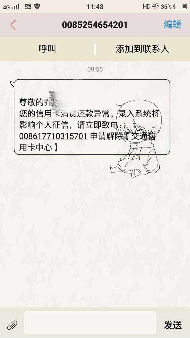 臨汾金融網(wǎng)訊(諶小慶)2019年3月28日,一位女士來到交通銀行臨汾鼓樓支行,進來的時候一直打著電話,大堂經(jīng)理便上前詢問客戶需要辦理什么業(yè)務(wù),客戶并沒有理會,大堂經(jīng)理在接待其他客戶的時候聽見了這位女士和對方的通話內(nèi)容,對方好像在找這位女士索要短信驗證密碼,更改什么密碼。大堂經(jīng)理立即反應(yīng)過來客戶可能是碰到了電信詐騙,便讓客戶先把電話掛了?蛻魭炝穗娫捄螅筇媒(jīng)理將事情的給支行營運主管做了簡短地反饋,了解到客戶收到0085254654201發(fā)送的詐騙短信,短信內(nèi)容為“尊敬的XXX,您的信用卡消費還款異常,錄入系統(tǒng)將影響個人征信,請立即致電:008617710315701申請解除【交通信用卡中心】”。營運主管得知此事后,與客戶進行了溝通,得知客戶上午收到一條短信提示信用卡綁定一張借記卡可以提高信用卡額度,該客戶便抱著疑惑的態(tài)度給短信中的電話打了過去,該女士跟對方說我已經(jīng)綁定了借記卡了,對方就說那您換一張卡,然后就開始提示通過短信驗證碼更改信用卡查詢密碼。在還未更改成功的時候,電話被我們的大堂經(jīng)理攔截了,阻止了密碼修改的辦理。 了解事情的經(jīng)過后,交行臨汾鼓樓支行營運主管給客戶講解了近期電信網(wǎng)絡(luò)詐騙的手段,告知客戶注意日常用卡安全,指導(dǎo)客戶將信用卡做了掛失,借記卡做了銷卡處理,最終幫助客戶保障了銀行卡資金的安全,成功堵截了一起電信網(wǎng)絡(luò)詐騙。 |