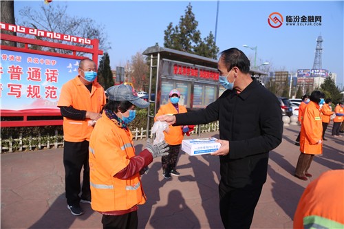 臨汾金融網(wǎng)訊(申靜靜)當(dāng)前新型冠狀病毒感染的肺炎疫情形勢嚴(yán)峻,洪洞農(nóng)商行再次重開展“風(fēng)雨同心、共抗疫情”慰問活動(dòng),班子成員帶領(lǐng)志愿者兵分三路,分別向住建局、人民醫(yī)院、中醫(yī)院三家防控疫情一線單位送去了手套、方便面等抗“疫”物資,表達(dá)了洪洞商行人對病毒抗?fàn)幍臎Q心,對駐守在一線同胞們的關(guān)心。 洪洞縣委常委、常務(wù)副縣長劉春林,縣住建局局長付雪海也蒞臨現(xiàn)場,與總行黨委書記董事長郭宏偉共同為環(huán)衛(wèi)工人送上手套。 |