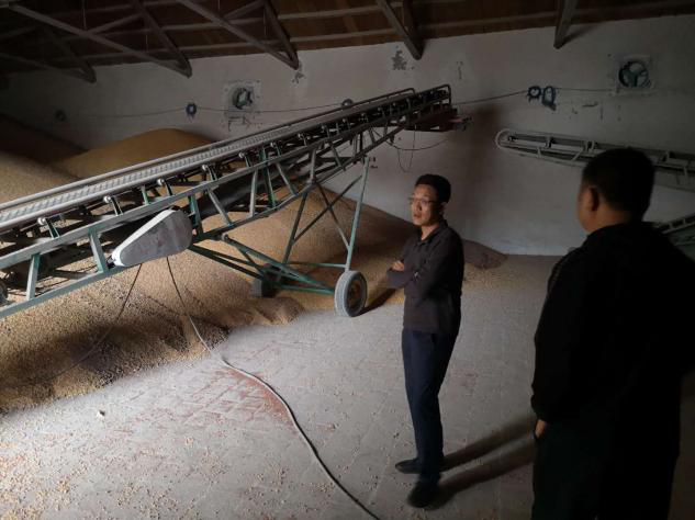 安澤縣支行行長董凌進(jìn)入倉庫實(shí)地考察糧食存儲情況