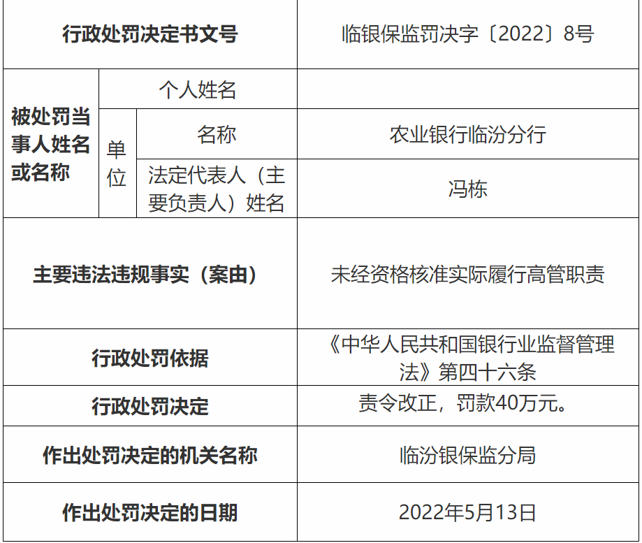 臨銀保監(jiān)罰決字〔2022〕8號(hào)