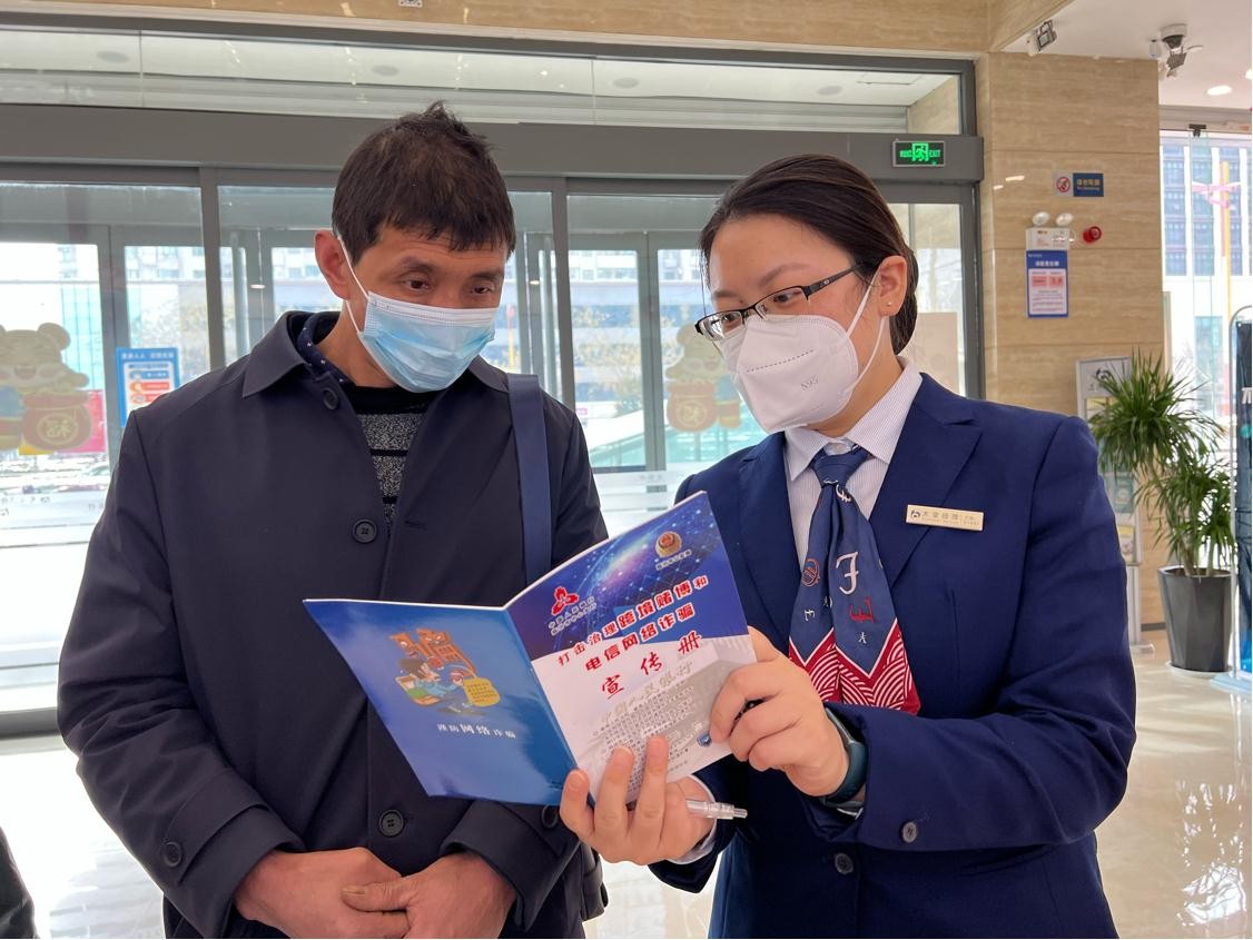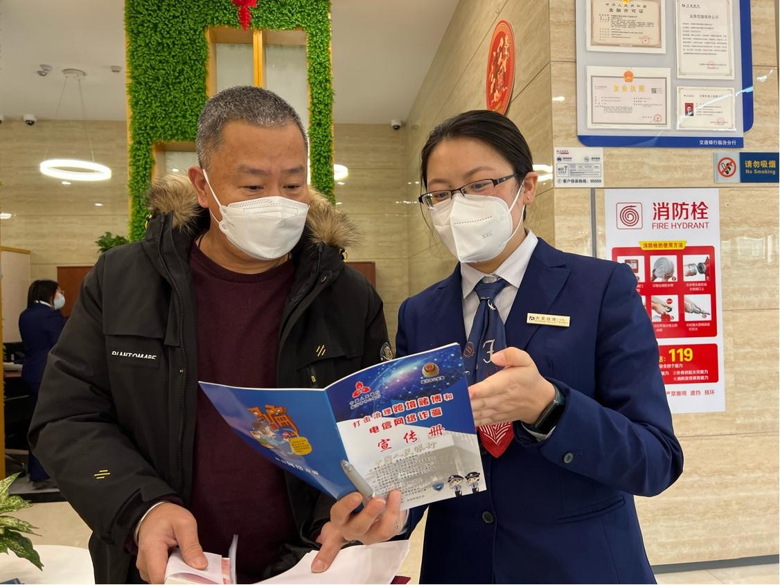 臨汾金融網(wǎng)訊(原偉)隨著“斷卡”行動(dòng)的不斷普及,社會(huì)公眾對(duì)于“斷卡”知識(shí)有了一定程度的了解,為了鞏固前期的宣傳效果,交通銀行臨汾東城支行于2023年1月充分利用廳堂陣地,開展了“斷卡行動(dòng)在身邊”宣傳活動(dòng)。 廣宣傳,普及有溫度 為了達(dá)到廣宣傳的目的,我行通過線上線下宣傳相結(jié)合的方式開展“斷卡行動(dòng)在身邊”宣傳活動(dòng)。 一是提高線下宣傳質(zhì)量,面對(duì)面宣傳更詳盡。我行在入口處,擺放了宣傳臺(tái),供客戶出入時(shí)隨手取用,同時(shí)在廳堂向全量到店客戶發(fā)放宣傳折頁,做到“人人講,人人知”的宣傳效果; 二是提高線上宣傳頻率,點(diǎn)對(duì)點(diǎn)宣傳更到位。我行通過公眾號(hào)、美篇、朋友圈、抖音等第三方平臺(tái),推送或轉(zhuǎn)發(fā)斷卡相關(guān)知識(shí)的鏈接,通過高頻次宣傳達(dá)到“人人看,人人懂”的宣傳目的。 詳講解,宣傳有力度 工作人員利用廳堂環(huán)境,開展廳堂微沙龍活動(dòng),向到店客戶詳細(xì)講解“斷卡行動(dòng)”的相關(guān)知識(shí),例如斷卡的形勢(shì)、斷卡行動(dòng)的目的、犯罪分子的常用手段及防范電信網(wǎng)絡(luò)詐騙的技巧等,提升公眾的斷卡知識(shí)水平及防范電信網(wǎng)絡(luò)詐騙的能力,從而達(dá)到提高斷卡成效的宣傳目的。 |