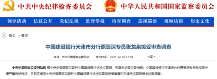 據(jù)中央紀委國家監(jiān)委駐中國建設銀行紀檢監(jiān)察組、天津市紀委監(jiān)委消息:中國建設銀行天津市分行原資深專員張龍泉涉嫌嚴重違紀違法,目前正接受中央紀委國家監(jiān)委駐中國建設銀行紀檢監(jiān)察組紀律審查和天津市監(jiān)察委員會監(jiān)察調查。 今年以來,建行系統(tǒng)已有多名干部“落馬”。2月15日消息,建設銀行酒泉分行原行長張森被提起公訴。甘肅省酒泉市人民檢察院公眾號“酒泉檢察”發(fā)布消息稱,日前,中國建設銀行酒泉分行原黨委書記、行長張森涉嫌受賄罪、違法發(fā)放貸款罪、違規(guī)出具金融票證罪一案,經酒泉市人民檢察院交辦由肅州區(qū)人民檢察院依法向肅州區(qū)人民法院提起公訴。 2月9日,據(jù)青島市人民檢察院消息,中國建設銀行股份有限公司研修中心華南研修院原副院長、資深副經理李保奇涉嫌受賄罪一案,由青島市人民檢察院依法向青島市中級人民法院提起公訴。據(jù)指控,被告人李保奇利用職務上的便利,為他人謀取利益,非法收受他人財物,數(shù)額特別巨大,依法應當以受賄罪追究其刑事責任。 2月1日,據(jù)中央紀委國家監(jiān)委駐中國建設銀行紀檢監(jiān)察組、山東省紀委監(jiān)委消息,日前,經中央紀委國家監(jiān)委批準,中央紀委國家監(jiān)委駐中國建設銀行紀檢監(jiān)察組、山東省青島市紀委監(jiān)委對中國建設銀行深圳市分行原黨委書記、行長王業(yè)嚴重違紀違法問題進行了紀律審查和監(jiān)察調查。 今年1月份,中國建設銀行機構業(yè)務部原總經理黃曦因涉嫌受賄一案,經吉林省人民檢察院指定管轄,由白城市人民檢察院依法向白城市中級人民法院提起公訴。 |