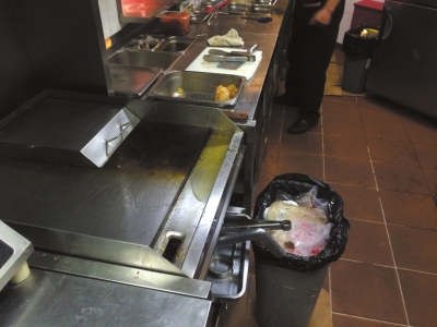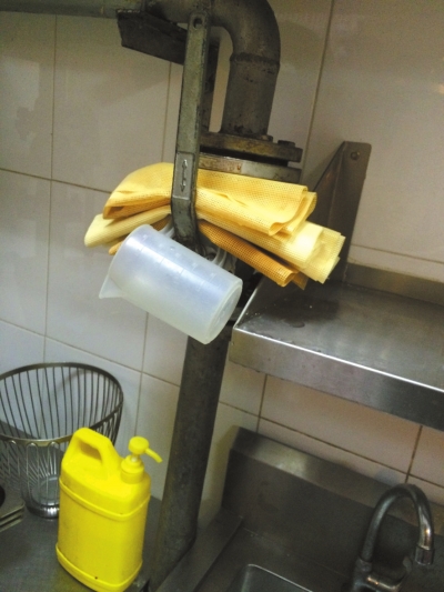 和合谷霄云路店,位于朝陽區(qū)霞光里附近,周邊很多寫字樓,每天食客絡繹不絕。近日,京華時報記者以應聘為由進入該店進行暗訪。記者暗訪期間發(fā)現(xiàn),該店存在將剩包子加熱后再賣、雞肉包裝保質期隨便改等現(xiàn)象。此外,該店衛(wèi)生條件堪憂,員工用擦完下水槽后的抹布擦餐盒,部分員工如廁后不洗手就直接制作食品,更有甚者,員工做飯和捅垃圾用同一把刮鏟。對此,該店員工稱,“在店里做事,不應太認真,否則會很累! □進店暗訪 剩包子冷藏后加熱再賣 和合谷霄云路店銷售早、中、晚小吃快餐,大廳里有10余張桌子,面積雖然不大,但每天客流不斷,尤其每天早餐和午餐,顧客有時排長隊。 4月1日上午,該店早餐賣剩下3個包子,員工將其放在操作臺上的一個餐盒里,經理讓一名員工把它裝入袋子,隨后放入冰箱。據一名員工介紹,“包子到店保質期是4天,一般加熱后賣不完,就再放入冰箱保存。而按照公司規(guī)定,加熱后賣不完的包子不能再賣,都要廢棄,但具體下來到店里怎么做,那都是領導的事。” 記者追問該員工,包子加熱后賣不完再放入冰箱,不廢棄,公司檢查到后有何處罰。該員工笑了笑說:“這你得問領導了,我也不好解釋。” 當天上午,另一名員工走到后廚,打開冰箱后,看到里面只有賣剩下的3個包子,表情驚訝地說:“早餐賣這么干凈,今天這是什么情況?” 記者暗訪發(fā)現(xiàn),像這種現(xiàn)象該店很普遍,大家都是睜一只眼閉一只眼,明知道公司不允許,但也沒有人員進行制止。有時包子剩下多的話,員工就用保鮮膜包裹著,上面再用筆寫上標簽,加熱后再售賣。 雞肉包裝保質期隨便改 4月1日上午,記者注意到,該店使用的雞肉用塑料袋包裝,員工拆開包裝后,再用保鮮膜包裹雞肉,員工用筆在標簽上填寫生產日期、解凍日期和保質期等。 該店一名老員工介紹,雞肉拆開包裝放入冷藏柜后,一般保質期為2天,不拆就是6天,如果賣不完,重寫個標簽貼上,時間隨便填。同時,該員工告訴記者:“這種做法是違規(guī)的,只有你自己心里知道,按道理超過保質期就得扔掉,公司規(guī)定肯定是不允許的。” “之前的雞肉賣不完也是改個標簽,那都是當班經理干的事!痹搯T工透露,一般情況下盡量少拆,賣完后再拆,或者根據當天客流,盡量當晚都賣完,“總之,怎么樣也不能讓公司查到過期食品,那就麻煩了”。該員工也認為,“這種行為屬于弄虛作假、欺騙上級,這樣做不對,咱們只是干活的,當班經理責任大”。 該員工叮囑記者,煎出的雞肉按規(guī)定保質期半小時,半個小時后如果賣不掉,就得扔掉,“但咱們的還得繼續(xù)賣,如果扔掉,你看經理不批評你才怪”。但如果公司下來檢查詢問的話,你說保質期半個小時就成。 記者在暗訪過程中發(fā)現(xiàn),該店員工煎出的雞肉,多數都超過半個小時,但均未被扔掉,而是繼續(xù)賣。該店一員工稱,去年12月份左右,店里因為發(fā)現(xiàn)有過期食品,被上級檢查過一次,店長、幾個助理全年的獎金都扣了。 圖中畫圈部分為包雞肉用的包裝袋,其上面保質期標簽隨便填 據和合谷官網顯示,北京和合谷餐飲管理有限公司成立于2003年底,2004年3月開出第一家店。目前和合谷在北京、天津、河北等地共有店鋪百余家。 和合谷也成為了國內首家獲得“全國營養(yǎng)健康餐飲示范單位”榮譽稱號的快餐企業(yè),已連續(xù)三年榮獲“北京餐飲十大品牌”、連續(xù)四年榮獲“北京餐飲企業(yè)50強”,被中央組織部授予“全國先進基層黨組織”的殊榮,連續(xù)9年被評為“北京市和諧勞動關系先進單位”,并先后榮獲“北京市文明單位標兵”、“北京市安康企業(yè)”、“企業(yè)信用評價AAA級信用企業(yè)”、“中國快餐最具成長性品牌企業(yè)”、“全國餐飲業(yè)優(yōu)秀企業(yè)”等。 >>公司背景 “全國餐飲業(yè)優(yōu)秀企業(yè)” □衛(wèi)生環(huán)境 抹布擦完下水槽再擦餐具 記者暗訪發(fā)現(xiàn),該店后廚邊上的清潔池使用率最高,洗米、餐盒清洗及后廚鍋的除垢均在該池中進行。清潔池上擺放4塊綠色抹布,但使用時未做到專布專用。 3月28日下午,該店一名老員工教記者清洗水槽和濾水箱等程序,并要求這項工作每天下班前都要進行。隨后,該店員工掀開下水道水槽上面的不銹鋼蓋子,順手拿起一塊抹布擦拭。不銹鋼下水槽有1米多長、30厘米寬左右,蓋子上面沾滿了灰塵和臟物,臟水都流到了旁邊水池未來得及清洗的盛菜用餐盒上。 記者表示,“人在下水槽蓋子上來回行走,用清潔布擦拭不臟嗎?”該員工稱,“那不在這兒沖洗在哪洗,倒上洗潔精刷干凈就行了”。 隨后,該員工把下水管道下面的濾水箱打開,把里面米飯等廚余垃圾倒出后,又用清洗布擦拭表面的臟物。記者當場提出質疑:“清洗布混用有區(qū)分嗎?有無專門擦拭餐盒的清洗布?”該員工表示,“沒有,哪能分那么細,就這么一大堆,洗什么都是它。” 記者暗訪期間,類似的工作每天都要做。此外,員工還用該抹布擦洗菜刀和切肉的砧板等廚具。 墊在包子下面的籠布,清洗后搭在滿是油漬和灰塵的管道上 做飯和捅垃圾同用一把鏟 3月30日中午,一名員工用鐵板燒煎完雞肉后,看到旁邊垃圾桶里的垃圾快冒出來時,他隨身用鐵板燒刮鏟,直接把垃圾捅下去,隨后將刮鏟重新放回鐵板燒操作臺。記者注意到,類似這種情況,該店員工都是如此操作,即便是捅