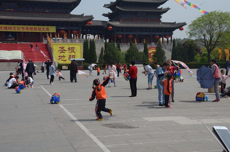 4月22日上午,洪洞縣紅祥幼兒園的60多位小朋友在家長(zhǎng)和老師的帶領(lǐng)下到大槐樹景區(qū)踏春游玩,小朋友們?cè)诰皡^(qū)內(nèi)了解大槐樹移民歷史,學(xué)習(xí)中華傳統(tǒng)文化,在祭祖廣場(chǎng)做游戲、放風(fēng)箏,氣氛非常熱鬧。 |