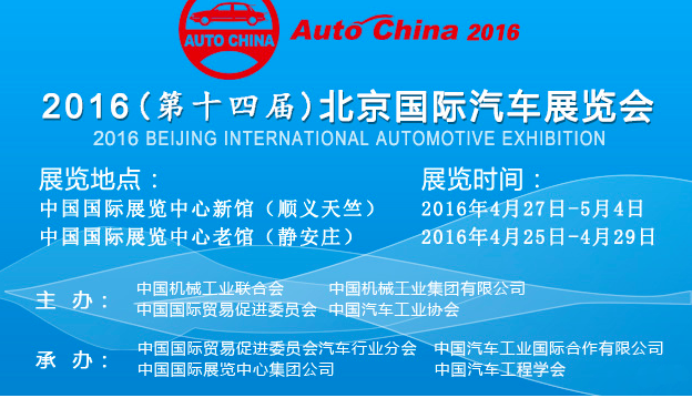 第十四屆(2016)北京國際車展于4月25日正式開幕。此次展覽在中國國際展覽中心新館和老館同時舉行,新館主要展出乘用車、商用車,豪華改裝車等,老館以零部件和新能源車輛展示為主。