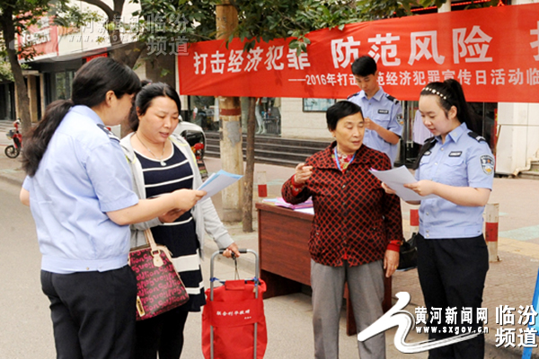 為進一步提升人民群眾識別和防范經(jīng)濟犯罪的意識及能力,2016年5月13日上午,臨汾市公安局直屬分局圍繞“防范風險護航發(fā)展”主題,走上街頭,面對群眾,開展打擊和防范經(jīng)濟犯罪宣傳活動。 此次活動,重點圍繞涉眾型經(jīng)濟犯罪,著力宣傳影響國計民生的非法集資、傳銷、假幣、網(wǎng)上信用卡詐騙、網(wǎng)上銷售假冒注冊商標等與群眾生活密切相關的經(jīng)濟犯罪,揭露常見犯罪手法。 民警向市民講解相關法規(guī) 活動中,民警現(xiàn)場向廣大群眾發(fā)放相關宣傳材料2000余份,接受群眾咨詢100余人,設立展示宣傳版面1塊,通過一些典型案例向群眾介紹犯罪分子采取的常見手段,展示公安機關打擊經(jīng)濟犯罪和護航改革發(fā)展的堅定決心和取得的顯著成果。通過宣傳,推動社會各界共同參與打擊防范經(jīng)濟犯罪工作。 |