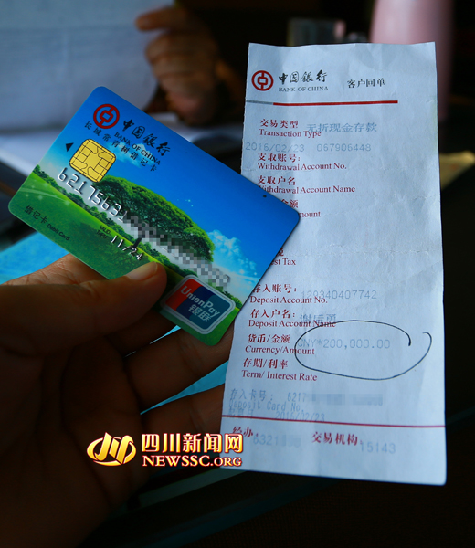 銀行認(rèn)為監(jiān)控已超過30天,無法被恢復(fù) 今年2月23日,謝后勇在中國銀行射洪支行存入60萬元現(xiàn)金。5月18日,他發(fā)現(xiàn)賬戶上僅40萬元,遂要求調(diào)取銀行監(jiān)控。然而,涉事銀行稱因存錢當(dāng)日(2月23日)的監(jiān)控已被覆蓋,無法還原當(dāng)日存錢經(jīng)過。5月30日,謝后勇將此事投訴到銀監(jiān)委遂寧分局。6月6日,謝后勇收到銀監(jiān)委遂寧監(jiān)管分局的投訴事項(xiàng)受理告知書,銀監(jiān)部門回應(yīng):將在30個(gè)工作日內(nèi)處理他的投訴。 同時(shí),律師認(rèn)為,謝后勇若能證明其曾在中國銀行(射洪太和大道南段支行)存入60萬元的事實(shí)屬實(shí),涉事銀行又無法證明另外20萬元錢的去向,那么,謝后勇以通過法律途徑申請(qǐng)賠償。 謝后勇堅(jiān)稱自己是存入銀行60萬元現(xiàn)金 儲(chǔ)戶:存入60萬現(xiàn)金幾個(gè)月后變成40萬元 謝后勇,今年61歲,在遂寧市射洪縣經(jīng)營私人診所。今年2月23日上午,他用一張錫箔紙和口袋裝好60萬元現(xiàn)鈔,在中國銀行射洪太和大道南段支行辦理定期存款。 “存錢那天,銀行柜員將錢數(shù)了好幾遍,花了一個(gè)多小時(shí)!敝x后勇說,那天銀行柜員告訴他,銀行無法辦理大額存款業(yè)務(wù),60萬元需分兩次存入,建議先開戶存入20萬元,剩下40萬元再一次性存入。 大約一小時(shí)后,銀行辦完業(yè)務(wù),謝后勇拿到一張儲(chǔ)蓄卡、一張銀行出具的“大額可轉(zhuǎn)讓存單申購”單據(jù)后離開銀行回家。 當(dāng)晚,因謝后勇沒弄懂銀行開具單據(jù)的含義,心里犯起嘀咕。次日,他在銀行咨詢后,柜員向他解釋“(我的)儲(chǔ)蓄卡里有20萬元,另外一張‘大額可轉(zhuǎn)讓存單申購’單據(jù)上還有40萬元,合計(jì)60萬元!崩先说囊苫蟮媒。此后的幾個(gè)月,他從沒查過這張儲(chǔ)蓄卡中到底有多少錢。 直到5月18日,謝后勇準(zhǔn)備在銀行買兩公斤理財(cái)產(chǎn)品——黃金,當(dāng)他填完購買申請(qǐng)單后,意外獲悉“卡里只有40萬元”。謝后勇先是一愣,后經(jīng)查詢確認(rèn)中國銀行卡里確實(shí)僅40萬元存款。 隨后,謝后勇要求銀行調(diào)取他存錢當(dāng)日的監(jiān)控,銀行回復(fù)稱當(dāng)日視頻內(nèi)容已被覆蓋,無法查看。5月19日,銀行向謝后勇的女兒謝銀平解釋,存儲(chǔ)監(jiān)控的硬盤經(jīng)“數(shù)據(jù)恢復(fù)”后,可查看謝后勇當(dāng)日存錢的經(jīng)過。但在5月23日,中國銀行射洪支行人員卻告知:“銀行監(jiān)控?zé)o法被恢復(fù)!倍藭r(shí)距謝后勇存錢日期剛好3個(gè)月。 事后,經(jīng)謝家人多方打聽獲悉,銀行監(jiān)控應(yīng)被保留3個(gè)月期限規(guī)定,而射洪涉事銀行做法不合常理。因此,謝家人認(rèn)為,涉事銀行系故意拖延時(shí)間,致使家屬就無法查看監(jiān)控。 謝后勇稱當(dāng)時(shí)柜員曾解釋這張“大額可轉(zhuǎn)讓存單申購”單上被存了40萬元錢 銀行:監(jiān)控視頻硬盤無法被恢復(fù)且已封存 6月1日,中國銀行射洪支行行長佘慶告訴記者,該銀行規(guī)定凡超過5萬元的業(yè)務(wù)均被視為大業(yè)務(wù),若是60萬元的存款業(yè)務(wù),銀行不會(huì)弄錯(cuò)。因此,銀行認(rèn)為謝后勇當(dāng)日只存了40萬元錢,且曾3次向謝家人溝通解釋,希望謝家人承認(rèn)40萬元的存款額。 “謝后勇當(dāng)日在銀行開戶存錢時(shí),銀行出具的每張單據(jù)都是經(jīng)其確認(rèn)、簽字后方能生效入庫保存。”佘慶說,銀行不會(huì)將60萬元現(xiàn)金業(yè)務(wù)錯(cuò)誤地存為40萬元。至于“大額可轉(zhuǎn)讓存單申購”的單據(jù)與其他單據(jù)一樣均表示謝后勇當(dāng)日僅僅存入40萬元現(xiàn)金。 針對(duì)儲(chǔ)戶反映的銀行監(jiān)控存儲(chǔ)期限問題。佘慶解釋,中國銀行射洪支行根據(jù)銀行行業(yè)內(nèi)規(guī)定,銀行監(jiān)控視頻內(nèi)容保存時(shí)間是30天,該規(guī)定符合國安GA38-2015號(hào)文件要求。為此,2月23日銀行的監(jiān)控內(nèi)容已超過正常存儲(chǔ)期限,視頻監(jiān)控信息已被覆蓋,并非銀行不愿意提供監(jiān)控視頻,或隱藏事實(shí)。 同時(shí),中國銀行遂寧分行辦公室負(fù)責(zé)人認(rèn)為,按慣例銀監(jiān)部門建議銀行應(yīng)將監(jiān)控視頻保存期限定為3個(gè)月,“但這只是‘建議’,銀行在具體操作中可將保留期限設(shè)為30天!蹦壳埃按鎯(chǔ)銀行監(jiān)控視頻的硬盤已被拆下,并封存起來了!辟軕c說。 中國銀行遂寧分行辦公室負(fù)責(zé)人表示,謝后勇存錢的銀行內(nèi)共有8個(gè)監(jiān)控探頭,且每個(gè)探頭的監(jiān)控內(nèi)容均被存在同一個(gè)硬盤內(nèi)。事后,銀行方面曾將該硬盤送往中國銀行四川省分行科技部,期望通過技術(shù)手段恢復(fù)當(dāng)日的監(jiān)控內(nèi)容,還曾請(qǐng)求警方幫助,其答復(fù)均是“難度太大,無法被恢復(fù)! 據(jù)了解,當(dāng)日為謝后勇辦理存款業(yè)務(wù)的柜員是今年初招聘入職的新人,對(duì)該名職員而言“60萬元是個(gè)大數(shù)目,至今他對(duì)當(dāng)日謝后勇存錢一事仍記憶猶新!痹撀殕T稱,當(dāng)天謝后勇只存了40萬元現(xiàn)金。 事后,中國銀行遂寧分行的管理人員曾對(duì)涉事銀行(中國銀行射洪太和大道南段支行)當(dāng)日(2月23日)經(jīng)辦的所有業(yè)務(wù),以及銀行內(nèi)的所有工作人員