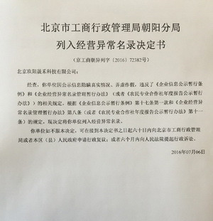 7月7日,據(jù)媒體報道:田樸珺名下公司因“公示信息隱瞞真實情況、弄虛作假”,日前正式被北京市工商局朝陽分局列入經(jīng)營異常名錄。 北京工商行政管理局朝陽分局表示,北京玖陽晟禾科技公司隱瞞真實情況、弄虛作假,違反了《企業(yè)信息公示暫行條例》好《企業(yè)經(jīng)營異常名錄管理暫行辦法》的相關(guān)規(guī)定。決定將玖陽晟禾列入經(jīng)營異常名錄。 北京工商行政管理局朝陽分局同時還稱,如果存有異議,在接到?jīng)Q定書起60日內(nèi)可向北京工商行政管理局或者本區(qū)縣人民政府申請行政復(fù)議;或者6個月內(nèi)向人民法院提起行政訴訟。 據(jù)和訊網(wǎng)了解,7月4日晚流傳田樸珺名下公司高達百億元的各項財務(wù)數(shù)據(jù),一度引發(fā)各種猜測。7月7日凌晨,在工商總局主管的全國企業(yè)信用信息公示系統(tǒng)上,有關(guān)“北京玖陽晟禾科技公司” 2013、2014年的財務(wù)數(shù)據(jù)已更新。 根據(jù)最新數(shù)據(jù),這家公司由田樸珺參與出資,于2010年注冊成立,2013年主要財務(wù)數(shù)據(jù)是是百萬級、十萬級和萬級,比如資產(chǎn)總額682.43萬元,銷售收入596.28萬元,凈利潤是負8.61萬元,納稅總額為20.04萬元;2014年的財務(wù)數(shù)據(jù)也更新為百萬級、十萬級和萬級,比如資產(chǎn)總額155.95萬元,銷售收入143.75萬元,凈利潤是負34.21萬元,納稅總額為8.07萬元。 以下是決定書全文: 北京市工商行政管理局朝陽分局 列入經(jīng)營異常名錄決定書 。ň┕ど坛惲凶帧2016〕72382號) 北京玖陽晟禾科技有限公司: 經(jīng)查,你單位因公示信息隱瞞真實情況、弄虛作假,違反了《企業(yè)信息公示暫行條例》和《企業(yè)經(jīng)營異常名錄管理暫行辦法》(或者《農(nóng)民專業(yè)合作社年度報告公示暫行辦法》)的相關(guān)規(guī)定。根據(jù)《企業(yè)信息公示暫行條例》第十七條第一款和《企業(yè)經(jīng)營異常名錄管理暫行辦法》第八條(或者《農(nóng)民專業(yè)合作社年度報告公示暫行辦法》第十一條)的規(guī)定,現(xiàn)決定將你單位列入經(jīng)營異常名錄。 你單位如不服本決定,可在接到本決定書之日起六十日內(nèi)向北京市工商行政管理局或者本區(qū)(縣)人民政府申請行政復(fù)議;或者六個月內(nèi)向人民法院提起行政訴訟。 2016-07-06 |