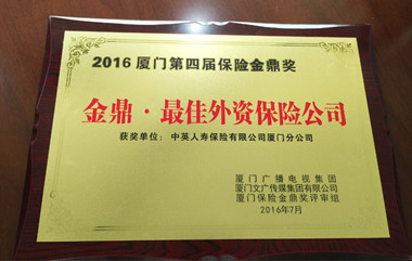 廈門第四屆保險金鼎獎頒獎典禮在廈門市文化藝術中心五一文化廣場隆重舉辦。在本次頒獎典禮中,頒發(fā)了包括社會責任獎、公益先鋒獎、優(yōu)質服務獎、民生保障貢獻獎、最佳外資保險公司等獎項。廈門中英人壽憑借高端卓越的外資品牌、快速穩(wěn)健的業(yè)務發(fā)展、高效專業(yè)的客戶服務在此次評選中脫穎而出,榮獲 “最佳外資保險公司”稱號。據(jù)悉,中英人壽是本次金鼎獎中唯一獲得殊榮的外資壽險公司。廈門中英人壽總經(jīng)理周磊女士代表公司接受榮譽,并借助頒獎典禮感謝一路走來關心、支持廈門中英人壽成長的各界人士,公司將持續(xù)堅持“以客戶為中心”的服務理念,穩(wěn)健經(jīng)營,突顯優(yōu)勢,讓中英人壽真心實意地“關愛萬家”。 廈門第四屆保險金鼎獎評選活動由廈門市金融工作辦公室指導、廈門文廣傳媒集團主辦、廈門廣播電視廣告有限公司承辦,自2016年6月28日啟動,歷時十余天,評選范圍涉及2016年度在廈門經(jīng)營的內(nèi)、外資保險公司共計30余家,通過網(wǎng)絡投票、公司評測、專家評估等綜合方式搜集數(shù)據(jù),對各保險公司進行綜合考評。廈門保險金鼎獎評選活動已連續(xù)舉辦四屆,在廈門保險行業(yè)中具有一定的影響力。 |