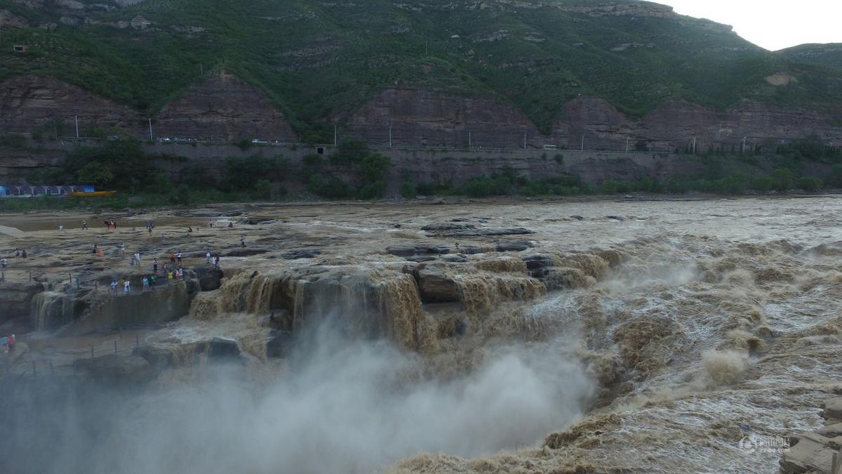 | 2016年7月25日,山西省臨汾市,受上游強(qiáng)降雨和水庫放水影響,吉縣黃河壺口瀑布迎來伏汛。據(jù)悉,受上游強(qiáng)降雨和水庫放水影響,黃河干流晉陜峽谷水勢(shì)大漲,吉縣黃河壺口瀑布迎來伏汛。最大水流量達(dá)到每秒2600立方米左右。濁流滾滾奔騰而下,氣勢(shì)磅礴。 |