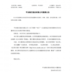 平安銀行股份有限公司澄清公告